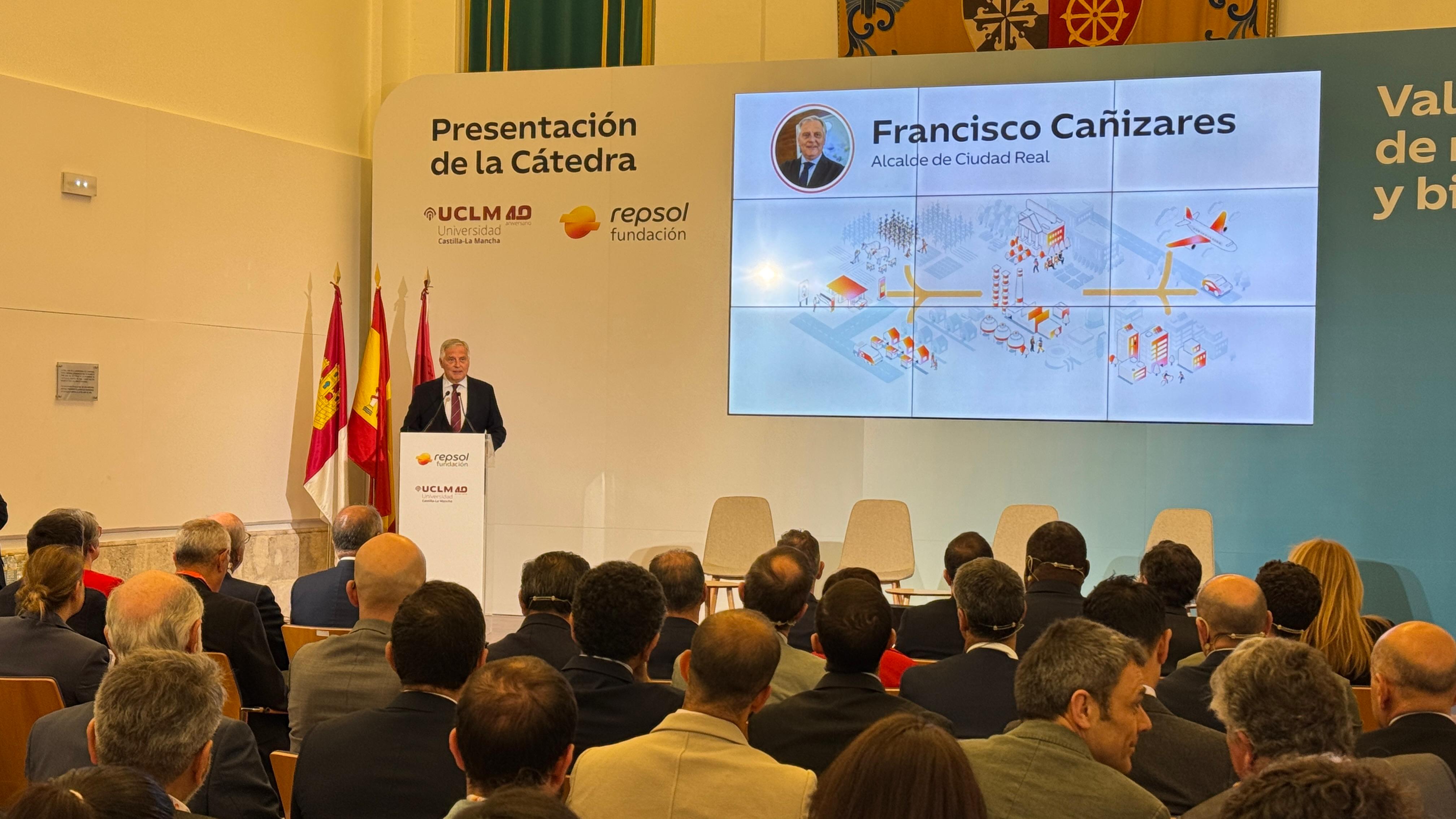 El primer edil ha acompañado al rector de la UCLM, Julián Garde; al presidente de Repsol, Antonio Brufau; y a la consejera de Desarrollo Sostenible, Mercedes Gómez, en el acto inaugural. En su intervención, Cañizares ha destacado la importancia del reto que se marca la nueva Cátedra universitaria para “resolver uno de los problemas que tenemos en la sociedad”, pero que puede convertirse “también en una oportunidad”. La valorización de residuos, ha señalado, está íntimamente ligada al modelo con el “que queremos afrontar el futuro”. De ahí la importancia de la colaboración público-privada entre la institución académica y la empresa multinacional.
