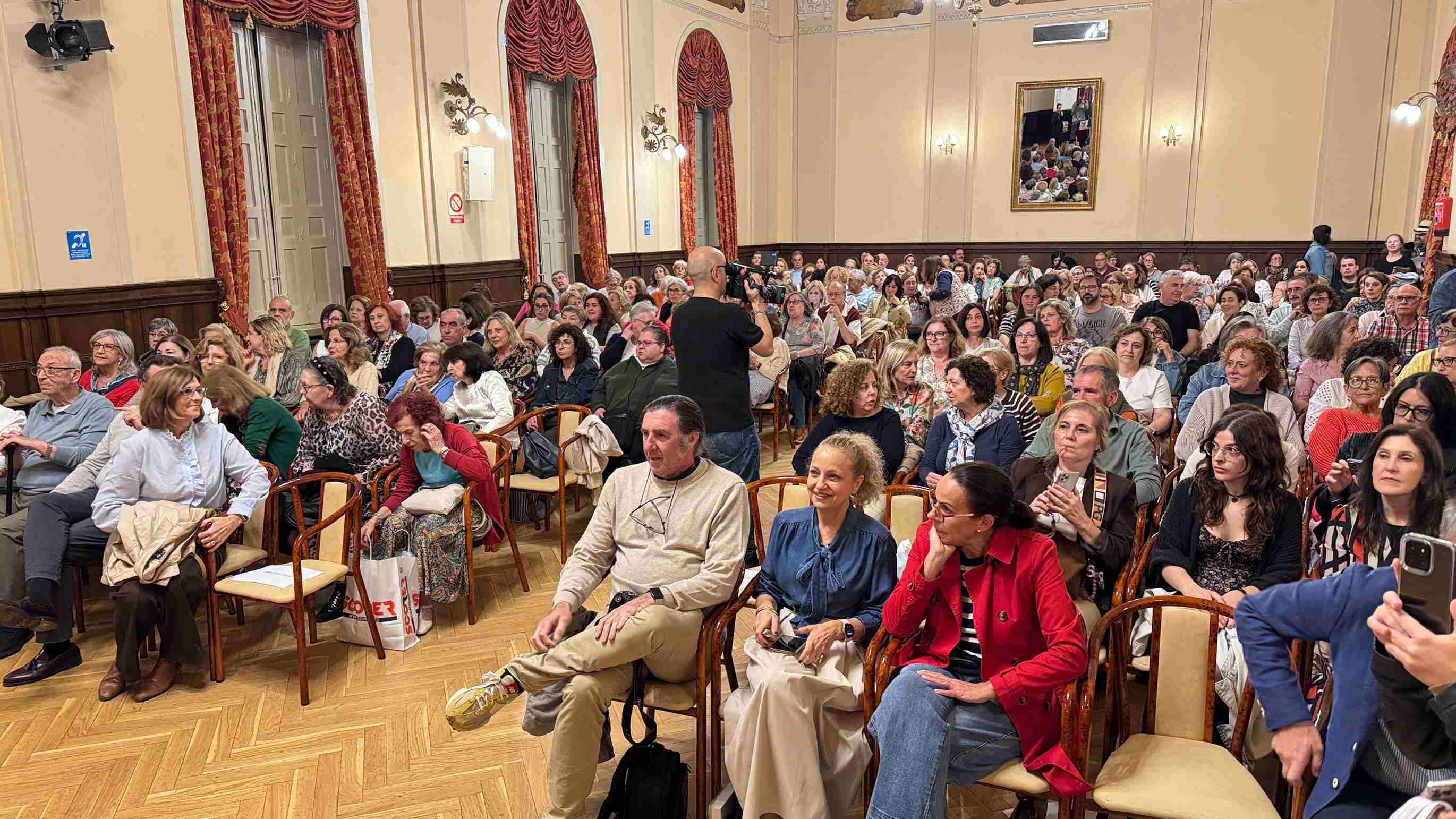 El Antiguo Casino ha recibido a María Dueñas con un lleno absoluto, en el encuentro programado por la concejalía de Cultura con los participantes en los clubes de lectura de las Bibliotecas Municipales. Una cita a la que no ha faltado el alcalde de Ciudad Real, Francisco Cañizares, acompañado por el concejal de Cultura, Pedro Lozano, y otros miembros de la corporación municipal.