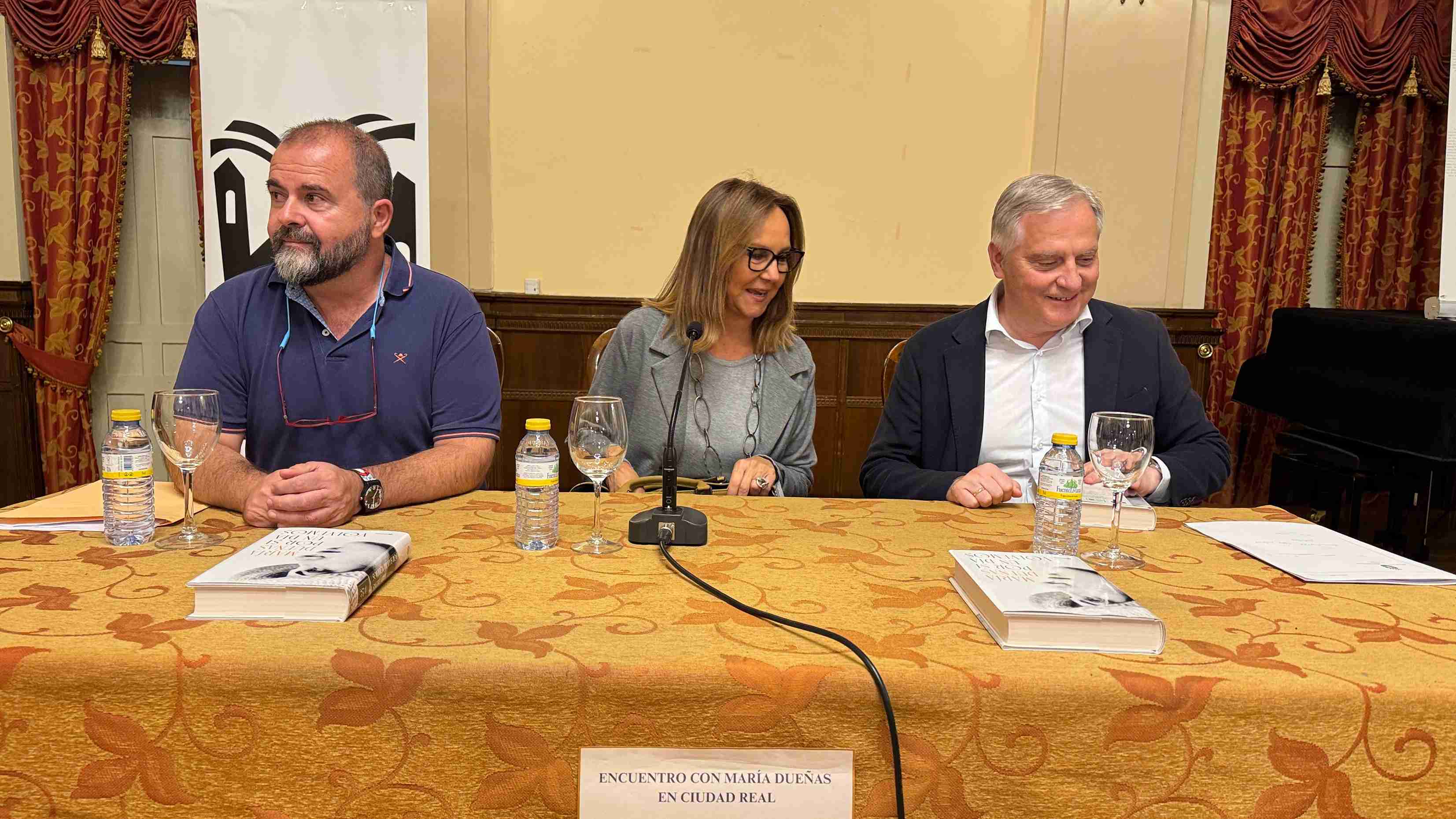 El alcalde de Ciudad Real, Francisco Cañizares, ha agradecido a Dueñas su presencia en la capital. “Es un honor tenerte aquí otra vez, en tu tierra” le ha dicho el primer edil, quien ha destacado la calidad de su obra en la que ha sabido construir “un universo reconocible por los lectores que siguen con mirada fiel cada publicación” a través de personajes sobresalientes, “mujeres fuertes, valientes, capaces de reinventarse”.
