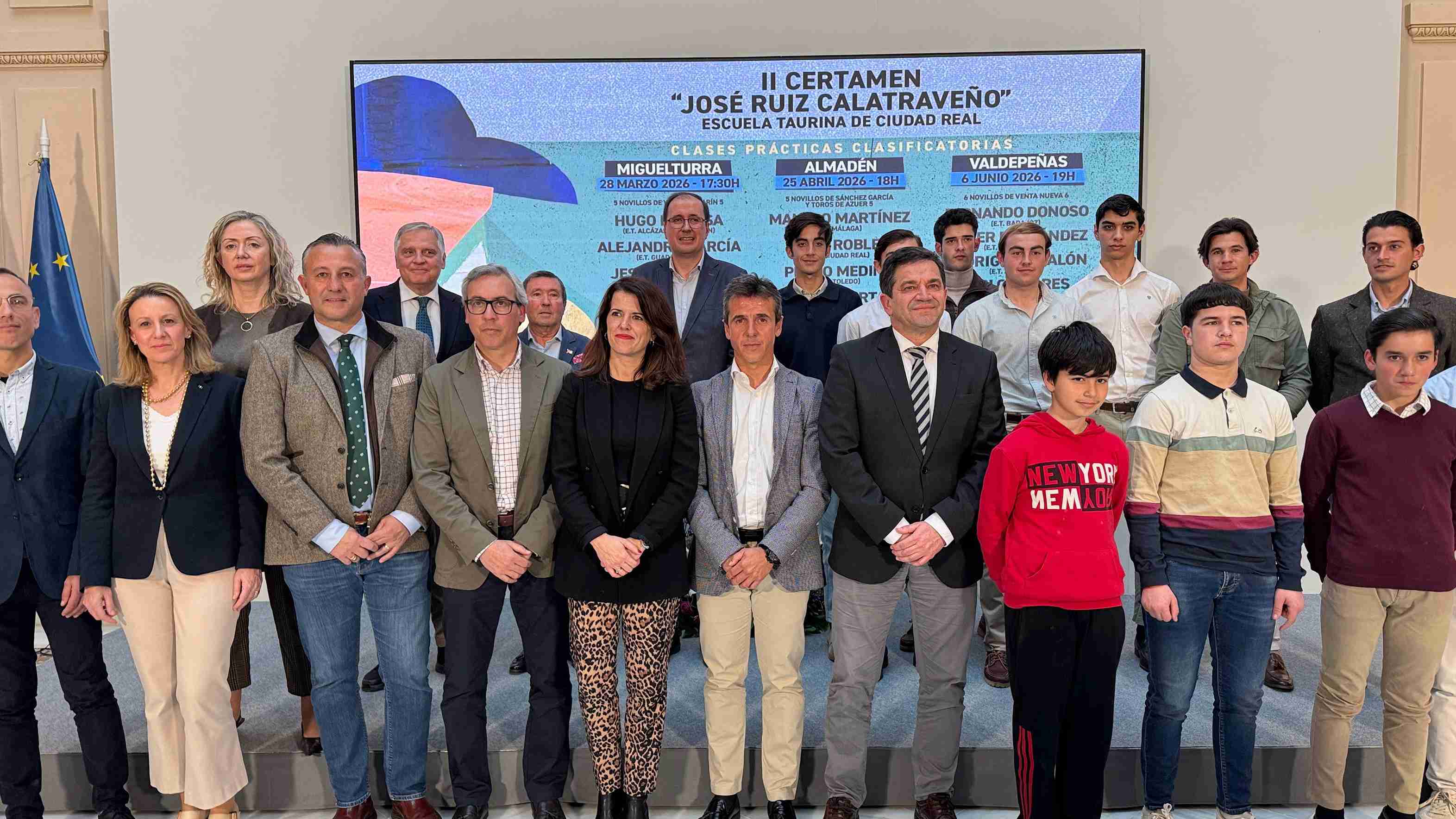 El Palacio de la Diputación provincial ha acogido la presentación de la segunda edición del Certamen “José Ruiz Calatraveño” organizado por la Escuela Taurina de Ciudad Real. Dieciséis novilleros pertenecientes a algunas de las mejores escuelas taurinas de todo el país van a tomar parte en las clases prácticas que se van a celebrar en Miguelturra, Almadén y Valdepeñas, de las que saldrán los finalistas que estarán presentes en la gran final del día 26 de julio, en el coso taurino de la capital, en una novillada sin picadores con reses de Manuela Patón.