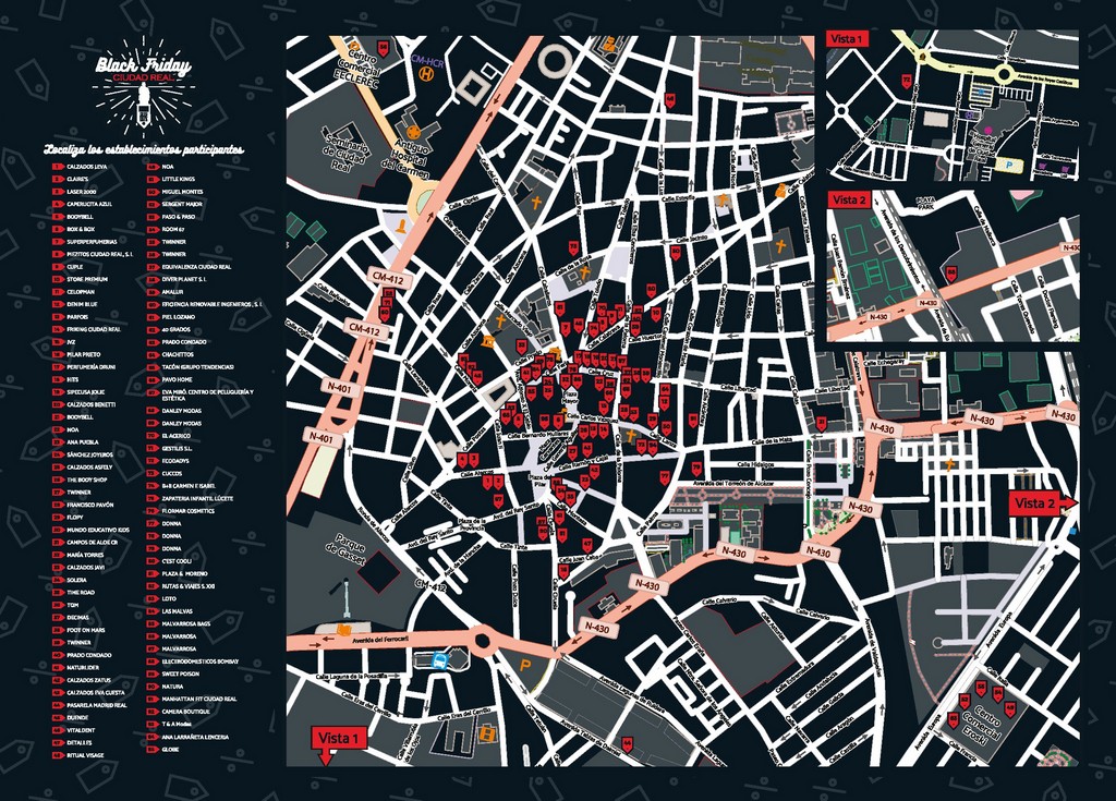 Para dinamizar las compras en Ciudad Real se ha desarrollado una campaña promocional con un cartel, un folleto informativo (físico y online) donde aparece los nombres y emplazamiento de los establecimientos de todo tipo que participan en esta iniciativa sobre un mapa de la capital. Se trata de una campaña totalmente gratuita para los establecimientos adheridos.