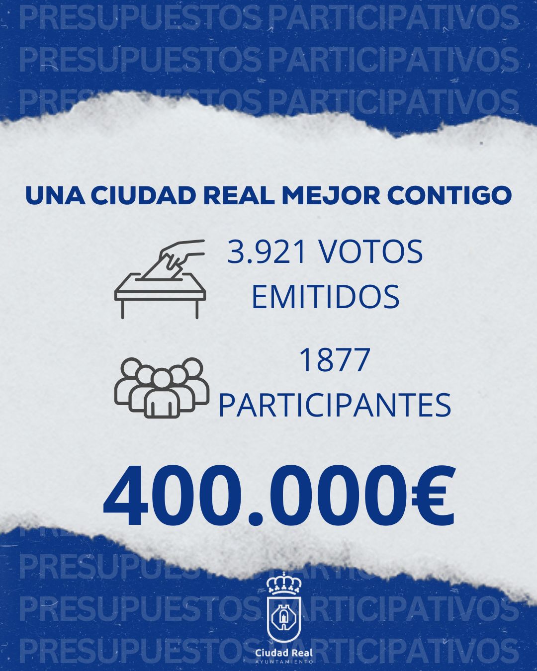 El Ayuntamiento de Ciudad Real ha hecho públicos los resultados del proceso que se ha llevado a cabo para los Presupuestos Participativos, una “iniciativa pionera” que va a permitir que sean los propios ciudadanos quienes propongan y decidan los proyectos en los que el consistorio va a invertir los 400.000€ destinados a esta partida dentro del Presupuesto Municipal de 2026.