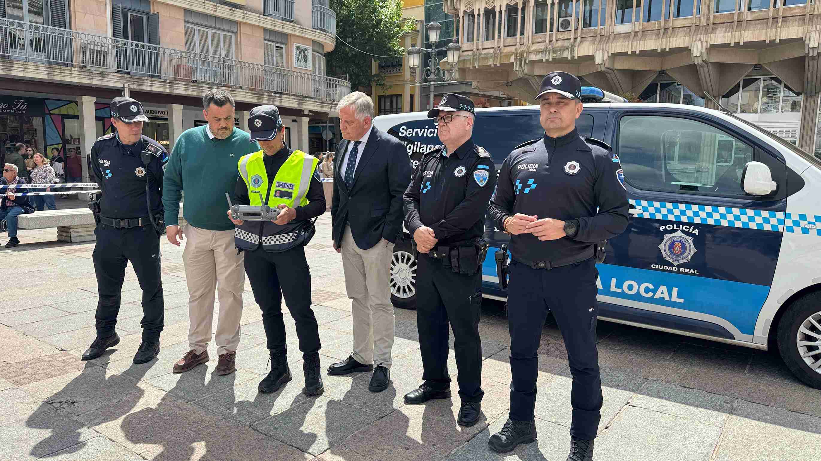 La inversión en Seguridad Ciudadana se aproxima al millón de euros en el presente mandato. Hoy se incorporan dos nuevos vehículos patrulleros, tres motocicletas y un equipo de drones para vigilancia aérea. El alcalde de Ciudad Real, Francisco Cañizares, avanza que el consistorio seguirá apostando por dotar de mayores recursos humanos y técnicos a la Policía Local como “elemento clave” en el modelo de ciudad “amable y segura” en el que se está avanzando.