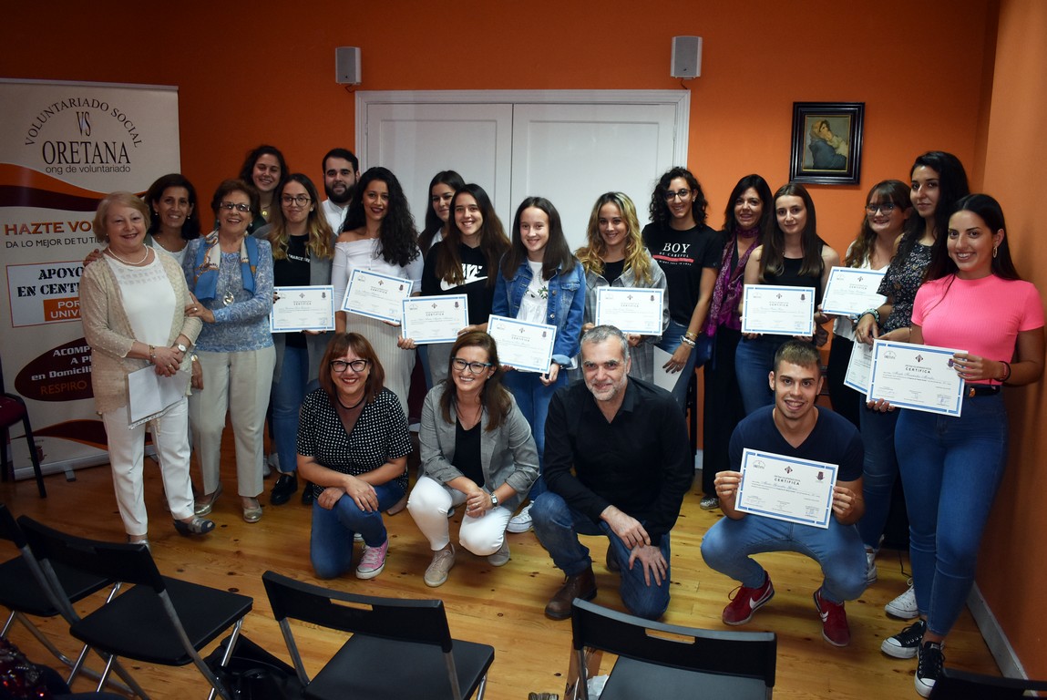 Estos veinte estudiantes de la Facultad de Educación, como voluntarios y voluntarias de Oretana, han prestado durante el curso 2018-2019 sus servicios en los Centros Sociales de la capital, impartiendo clases de apoyo. Una iniciativa que les permite complementar la teoría que reciben en la Universidad, con la práctica docente, al tiempo que se les reconocen créditos para su expediente académico.