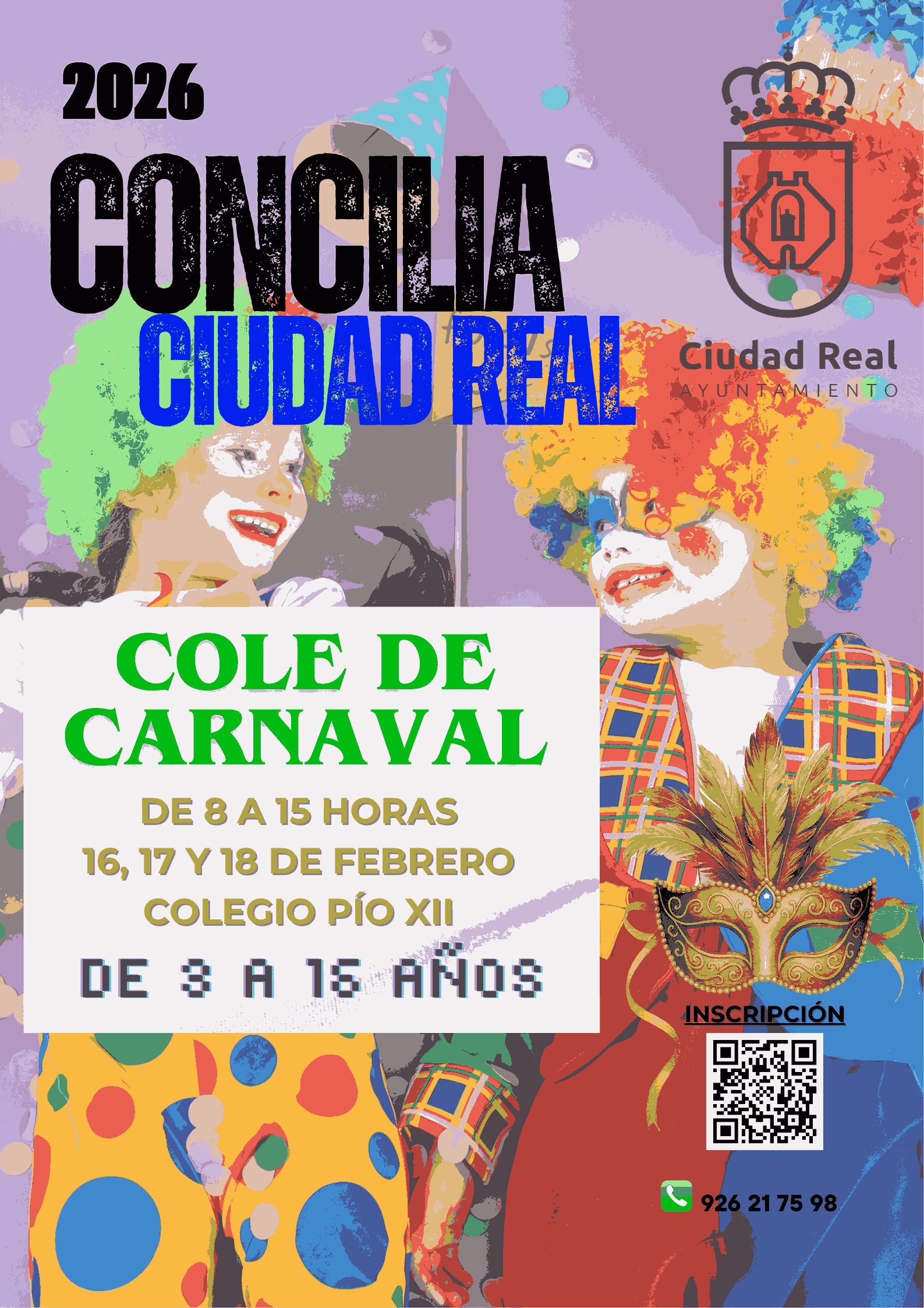 Con motivo del Carnaval, la Concejalía de Igualdad del Ayuntamiento de Ciudad Real pone en marcha el Cole de Carnaval, una acción de conciliación pensada para que las familias puedan organizar su día a día con tranquilidad mientras los/as peques disfrutan, aprenden y se divierten 🎨🤹♀️🎭