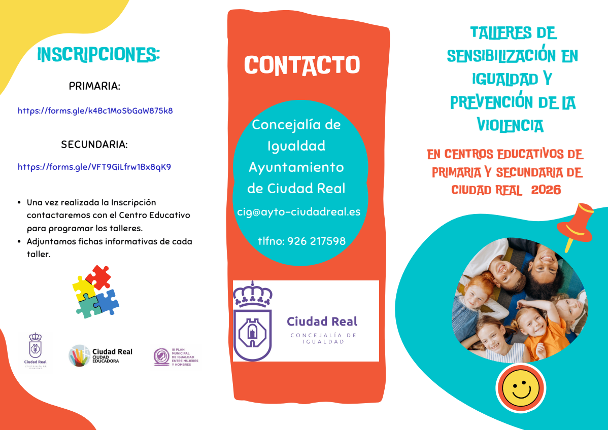 La Concejalía de Igualdad del Ayuntamiento de Ciudad Real pone en marcha un nuevo programa de talleres de sensibilización en igualdad y prevención de la violencia dirigidos al alumnado de Educación Infantil, Primaria y Secundaria de los centros educativos del municipio.